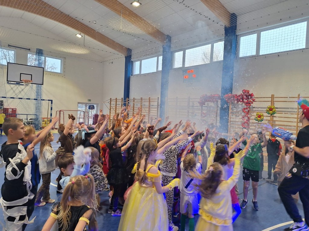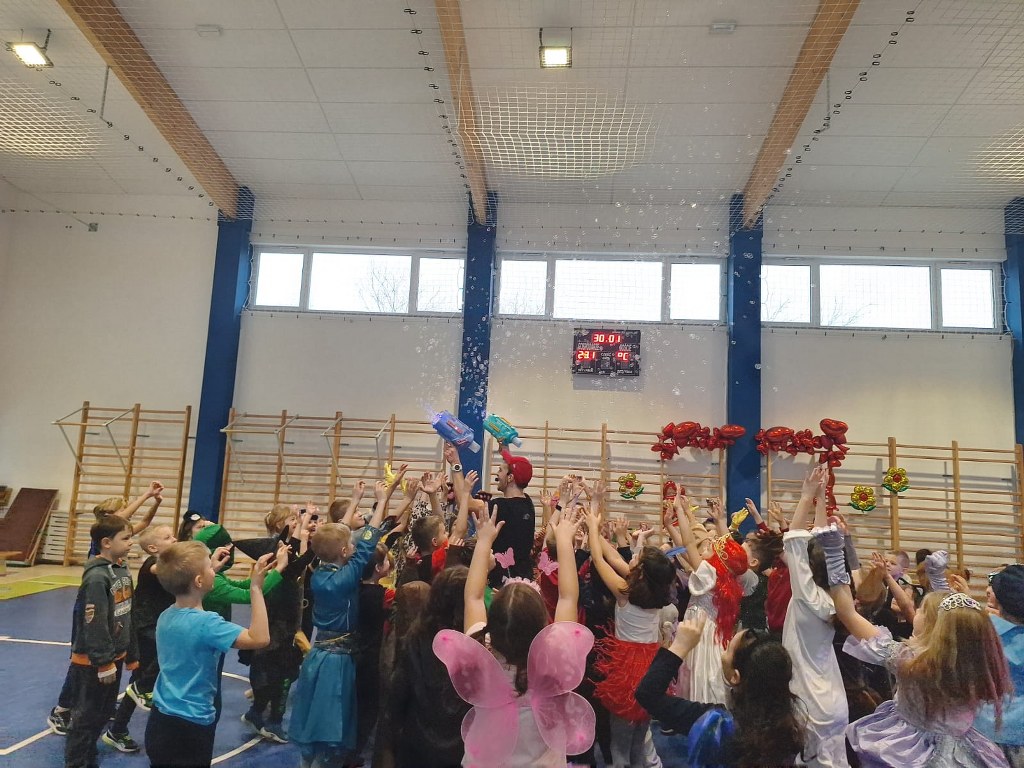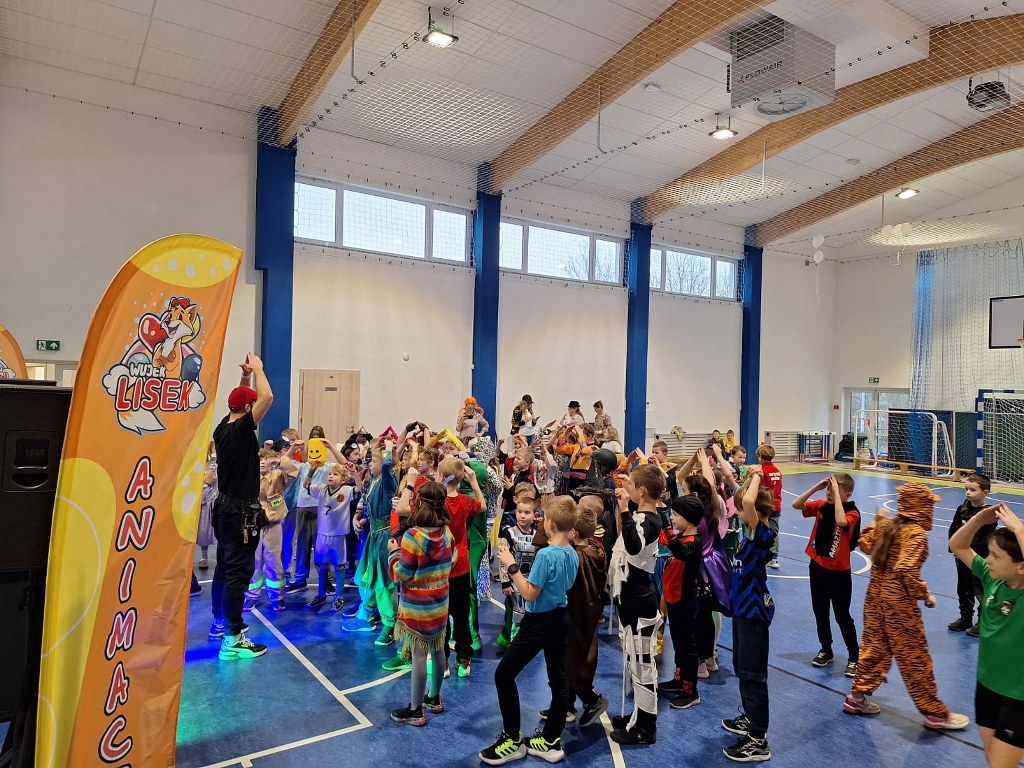 W ostatnim dniu przed feriami zimowymi w naszej szkole odbył się bal karnawałowy, w którym uczestniczyli uczniowie klas 0 – III. W tym dniu hala sportowa zamieniła się w kolorowy parkiet taneczny, a Pan Lisek porwał wszystkich uczniów klas młodszych do tańca i zabawy.