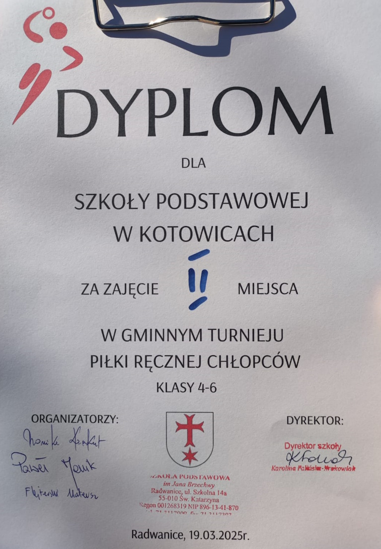 Sukces chłopców z klas 4-6. W zawodach gminnych w piłce ręcznej zajęli drugie miejsce. Tym samym zostali wicemistrzami Gminy Siechnice!